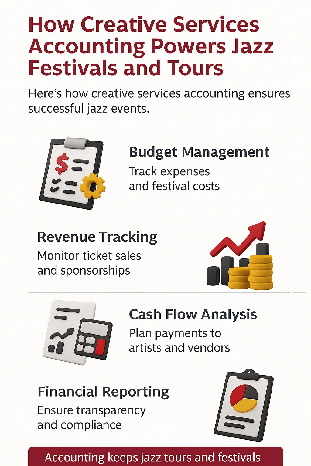 Takeaway: Jazz festivals and tours succeed when financial clarity matches creative ambition. Creative services accounting turns volatility into strategy.
